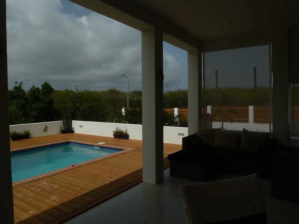 Wind can be a blessing on the tropical island of Curaçao. However when there is too much wind on your porch it can be a curse as well. With these tailor-made wind breakers it is possible to enjoy a cappuchino while reading a newspaper, without both of them fly straight into your face. The wind breakers can be rolled up when necessary on a windless day, but will probably stay down all year round since there is enough shade on this veranda to keep it cool.